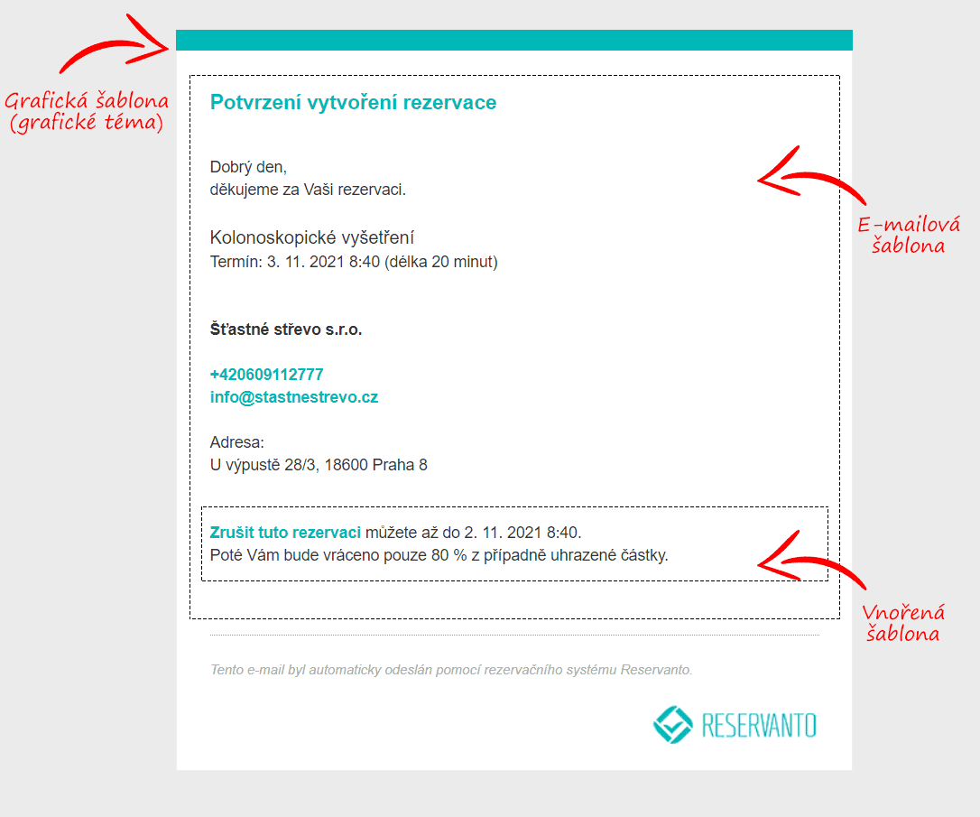 Reservanto skládá e-mailové zprávy z více druhů šablon:
